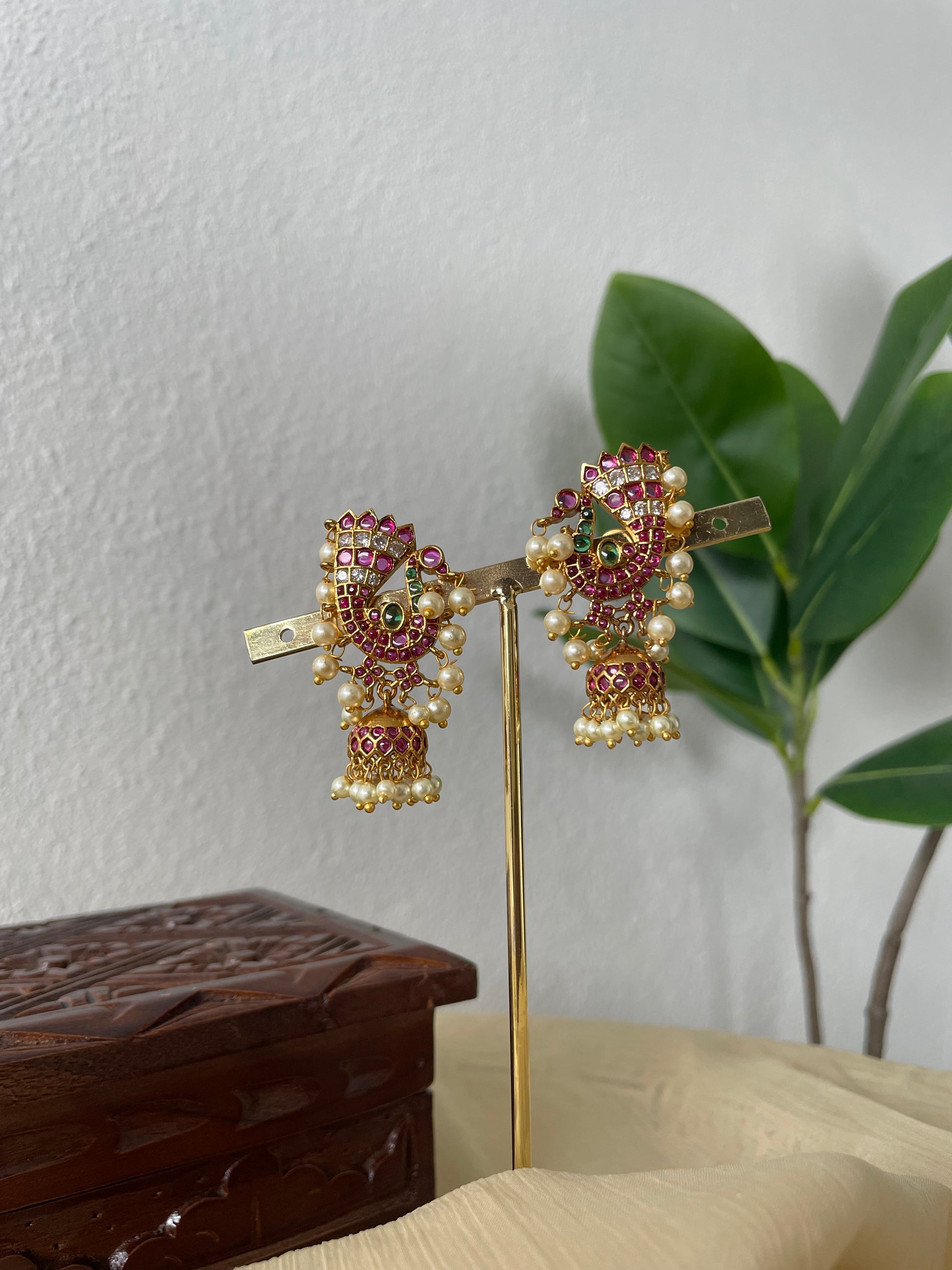 Temple Muse Edit - Peacock Kemp Jhumka Drops